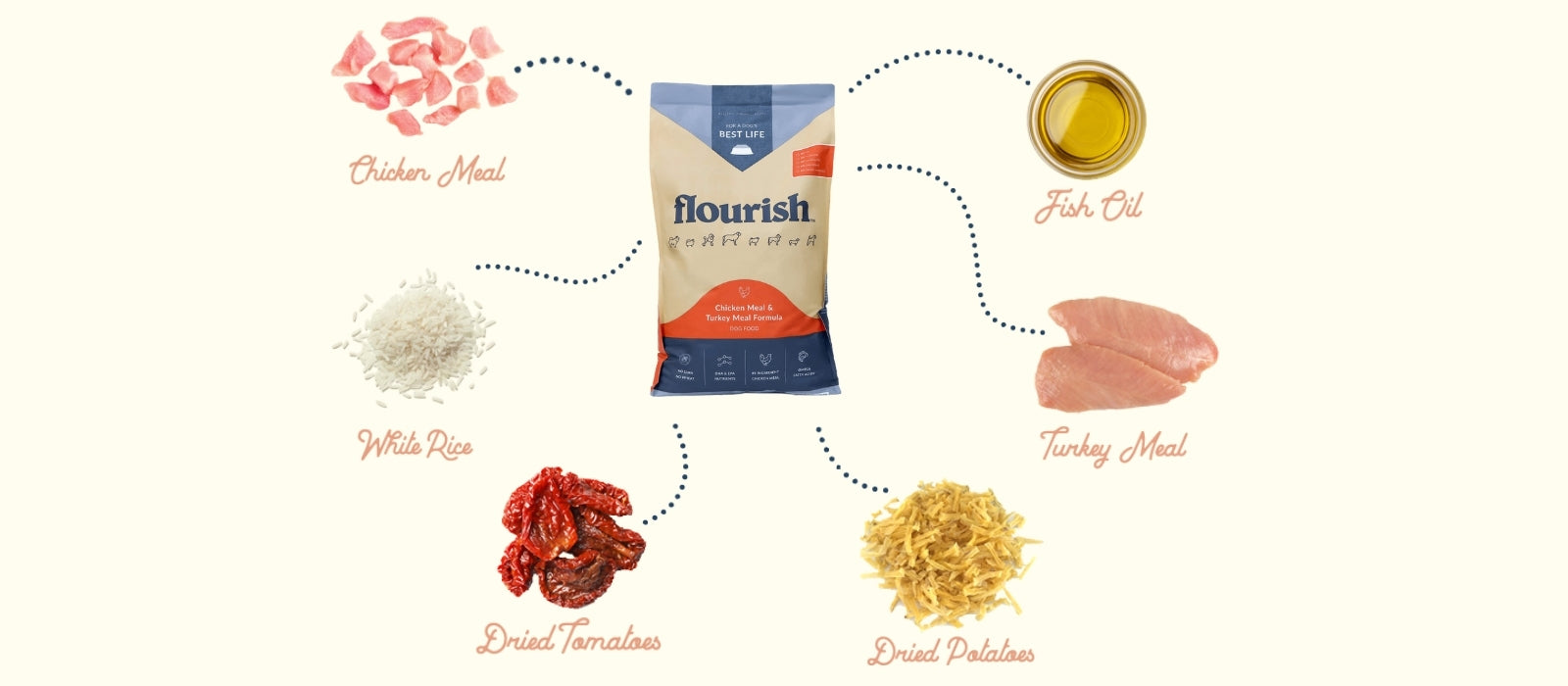 The everyday meal plan for dogs has changed for the better! Flourish offers a fresh and honest kibble recipe with limited ingredients, three times the amount of protein, nutrient-rich fats, carbohydrates, and minerals. Plus, a delicious taste and aroma that will satisfy your companion all year long